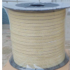 纶纤维盘根  由芳纶纤维浸渍聚四氟乳液和润滑剂处理编织而成。有较好的耐化学性,高回弹,低冷流。芳纶盘根具有极好的高转速、高模数的性质(被称为人造金属线)。所以,与其它类型的盘根比较,它能抵抗颗粒结晶介质和更高的温度既可单独使用也可与其它盘根组合。在泵系统上是很好的石棉替代产品。